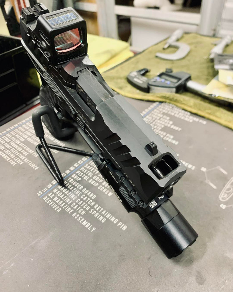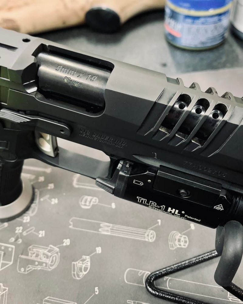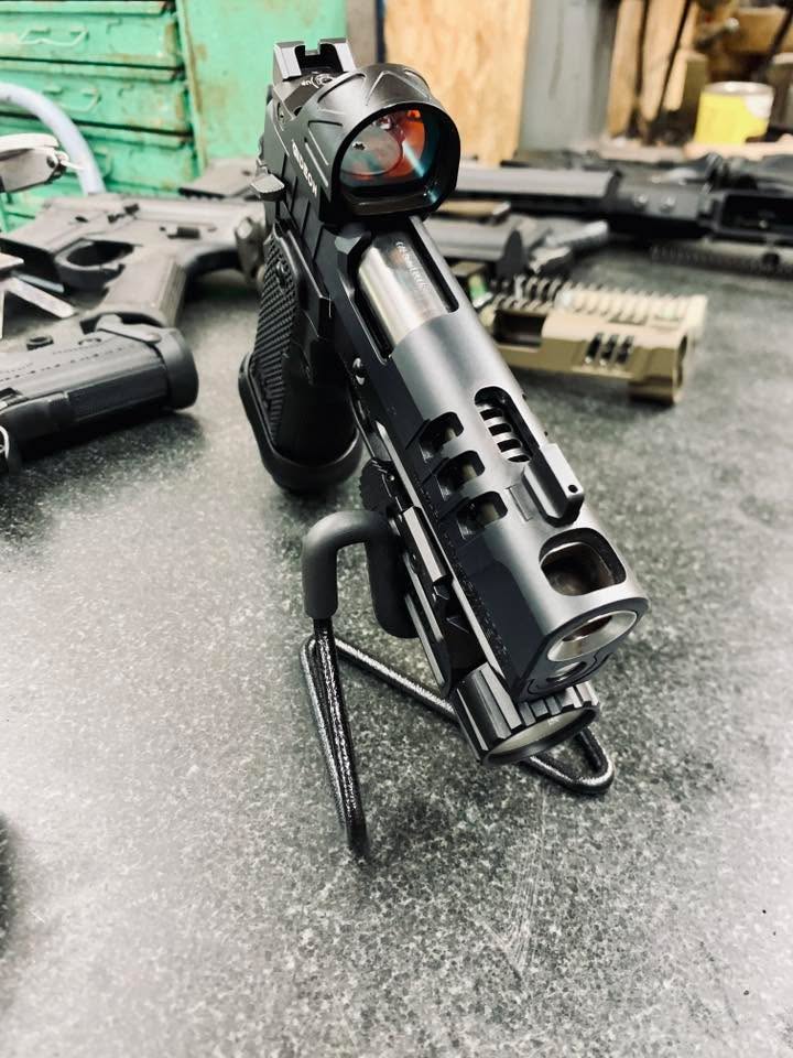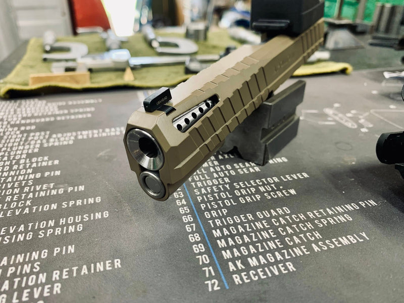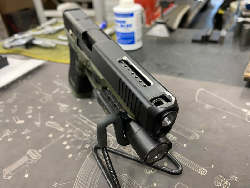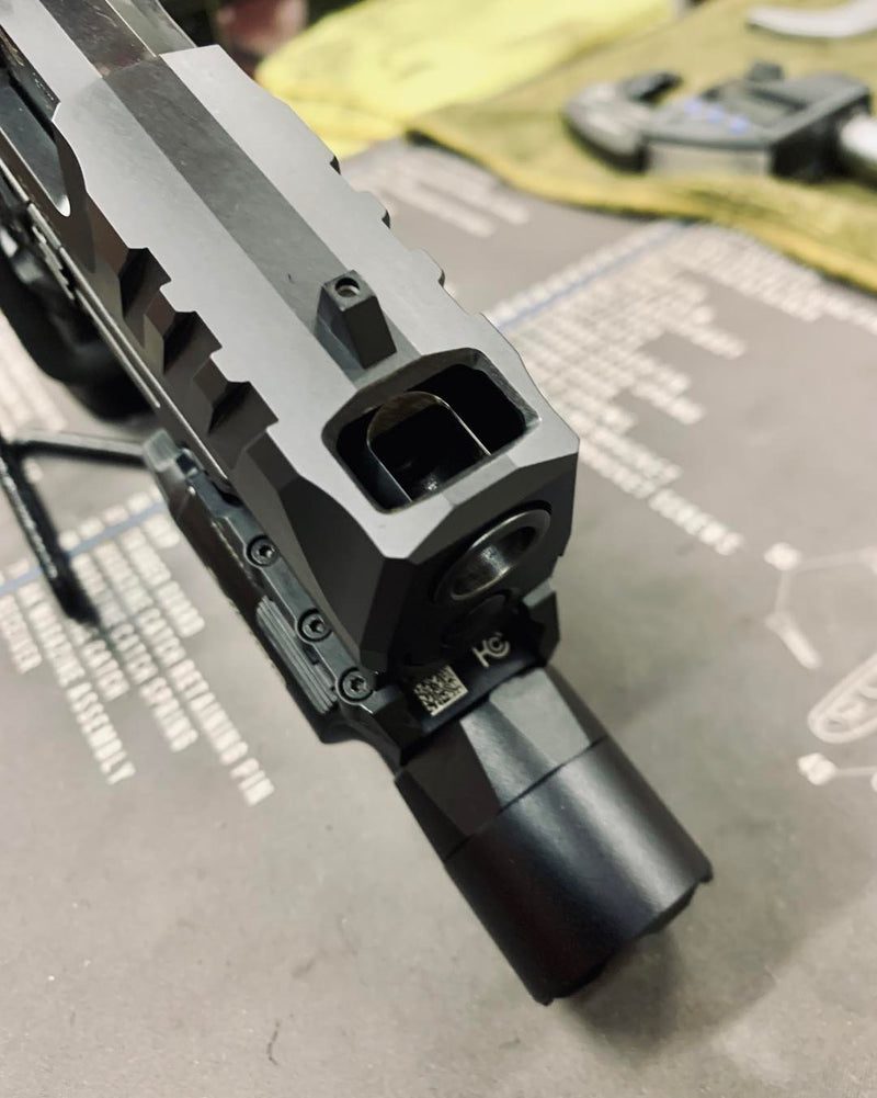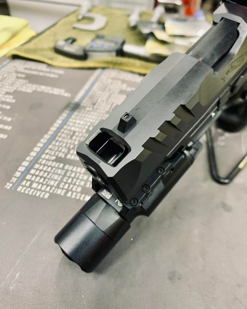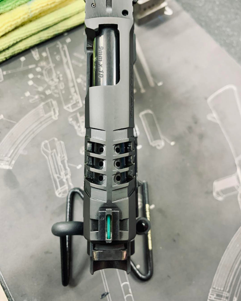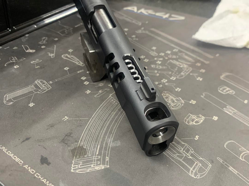 Upgraded porting with slotted ports, chamfered edges and a flush cut and reverse crowned barrel.